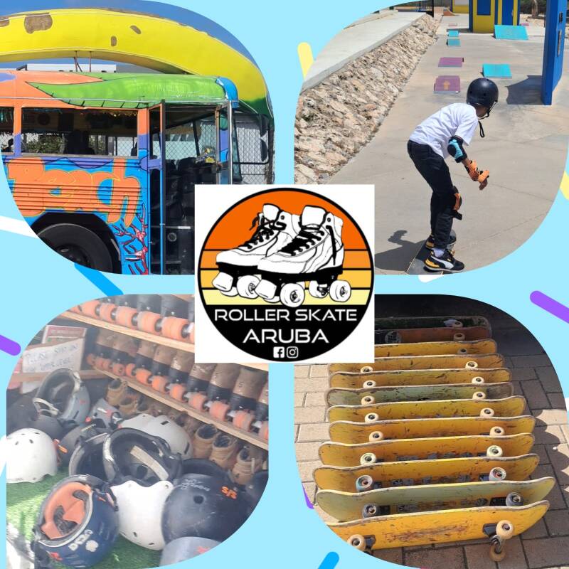 Een dagje uit met de party bus naar Parke Curazon om samen met Mirjam en Mick van 'roller skate school Aruba'